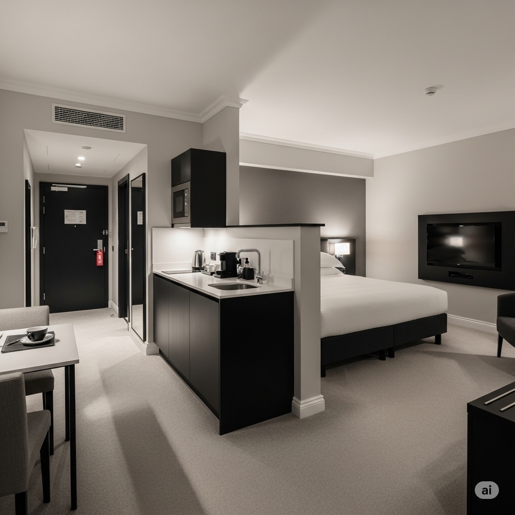 Seeking a windowless (or easily filmed as windowless) room with an industrial, minimalist feel for a guest quarters scene in a dramatic series pilot.
